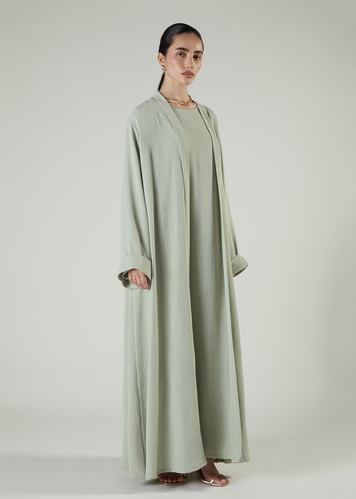 Two Piece Open Abaya With Slip Mint