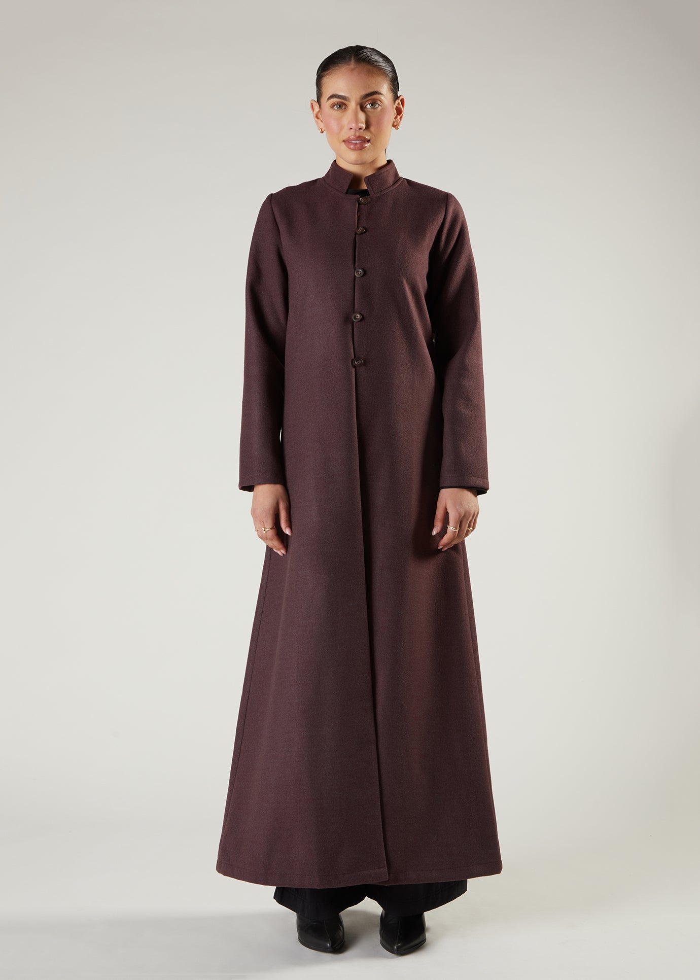 Made for a slightly slim silhouette. The coat has buttons that go down three quarters of the way, has a slit at the back and styling is perfect for layering over outfits and ideal for transitional weather.