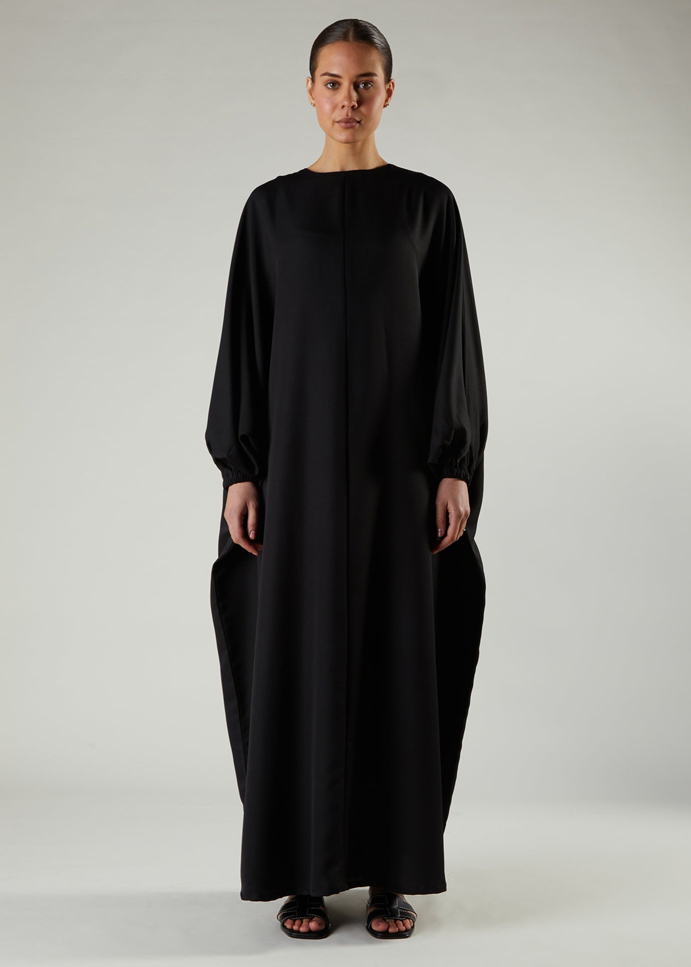 A loose fit Kaftan providing full and fluid coverage, perfect for evening prayers or as a quick cover up to throw on and look put together. Has a loose-fitting silhouette.