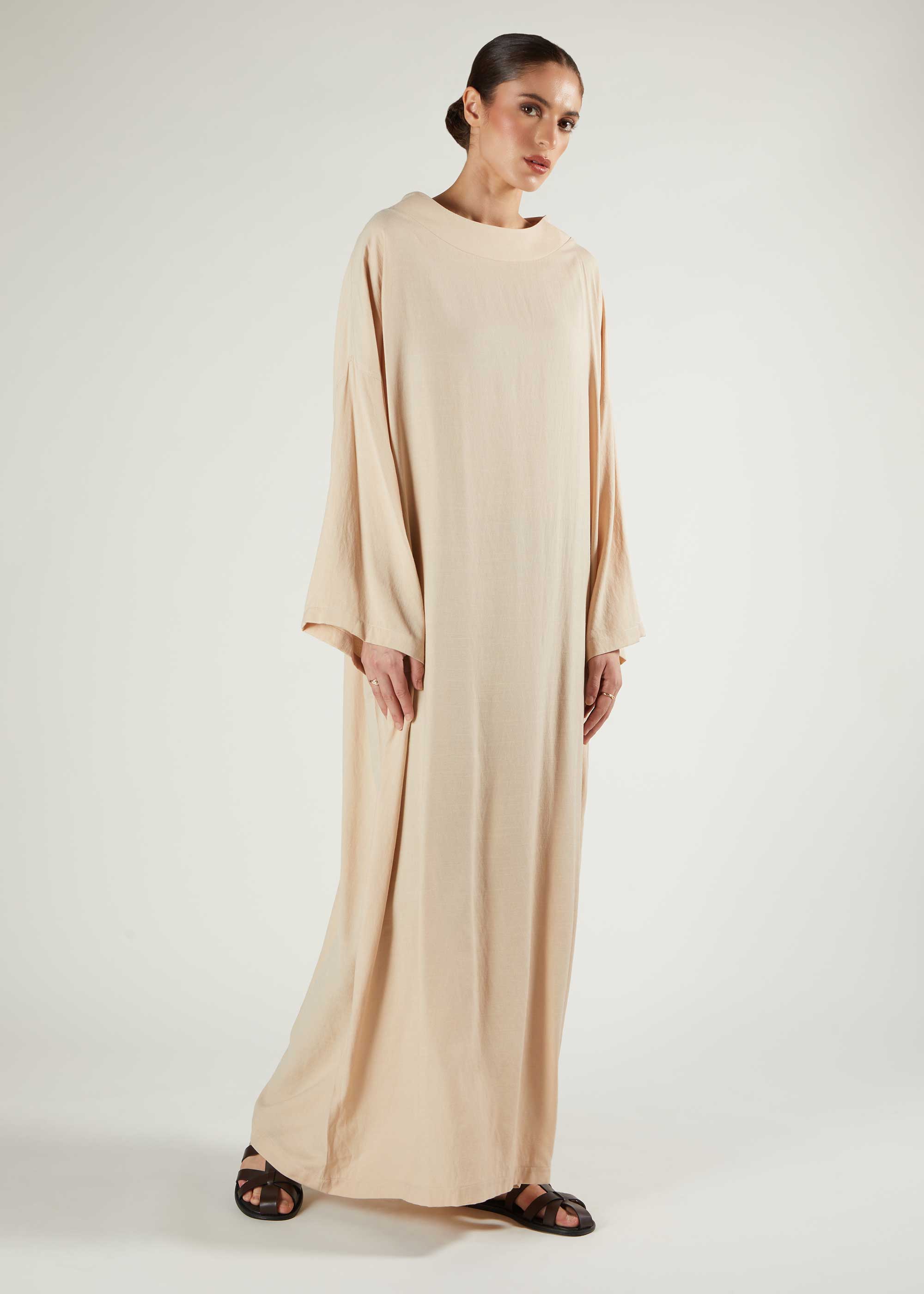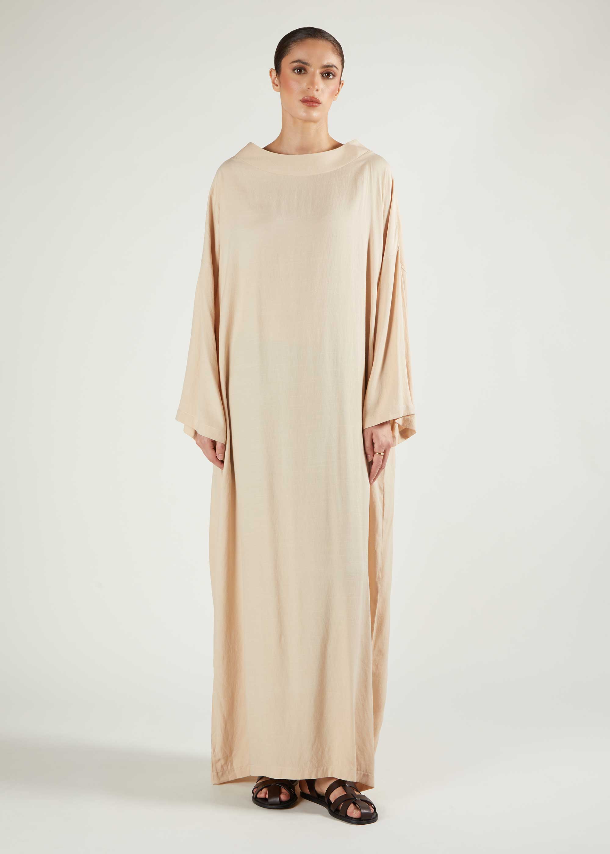 Boat Neck Abaya Natural