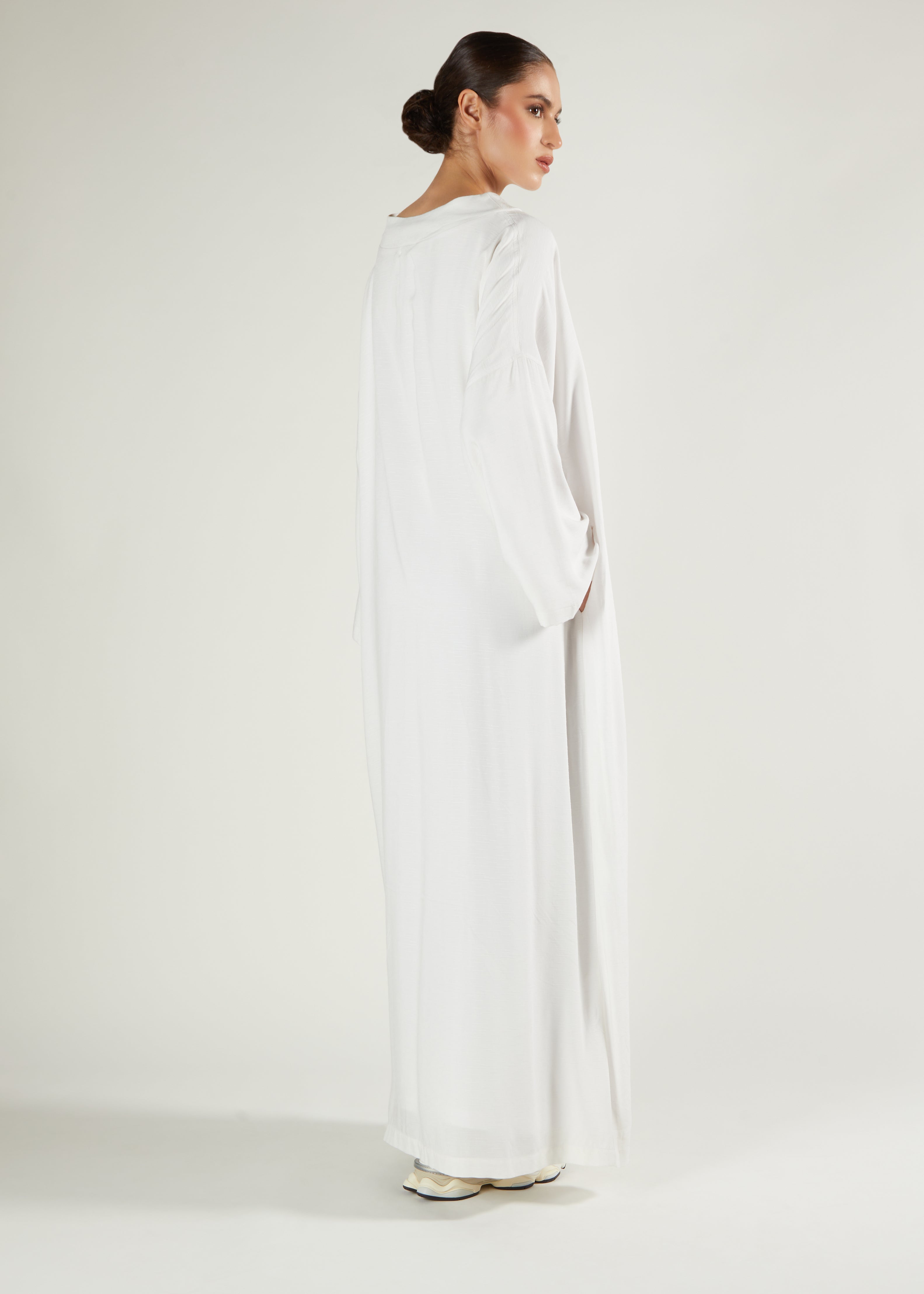 Boat Neck Abaya Off White