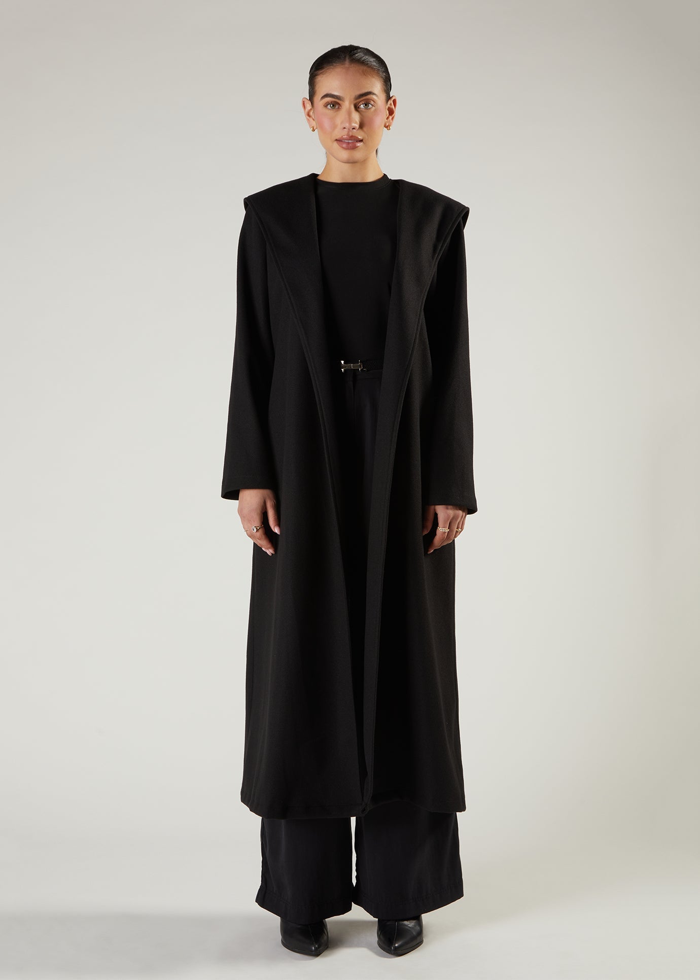 This open style cover up features a hood and no fuss detailing. Ideal to throw on as a quick cover up and perfect for the transitional season