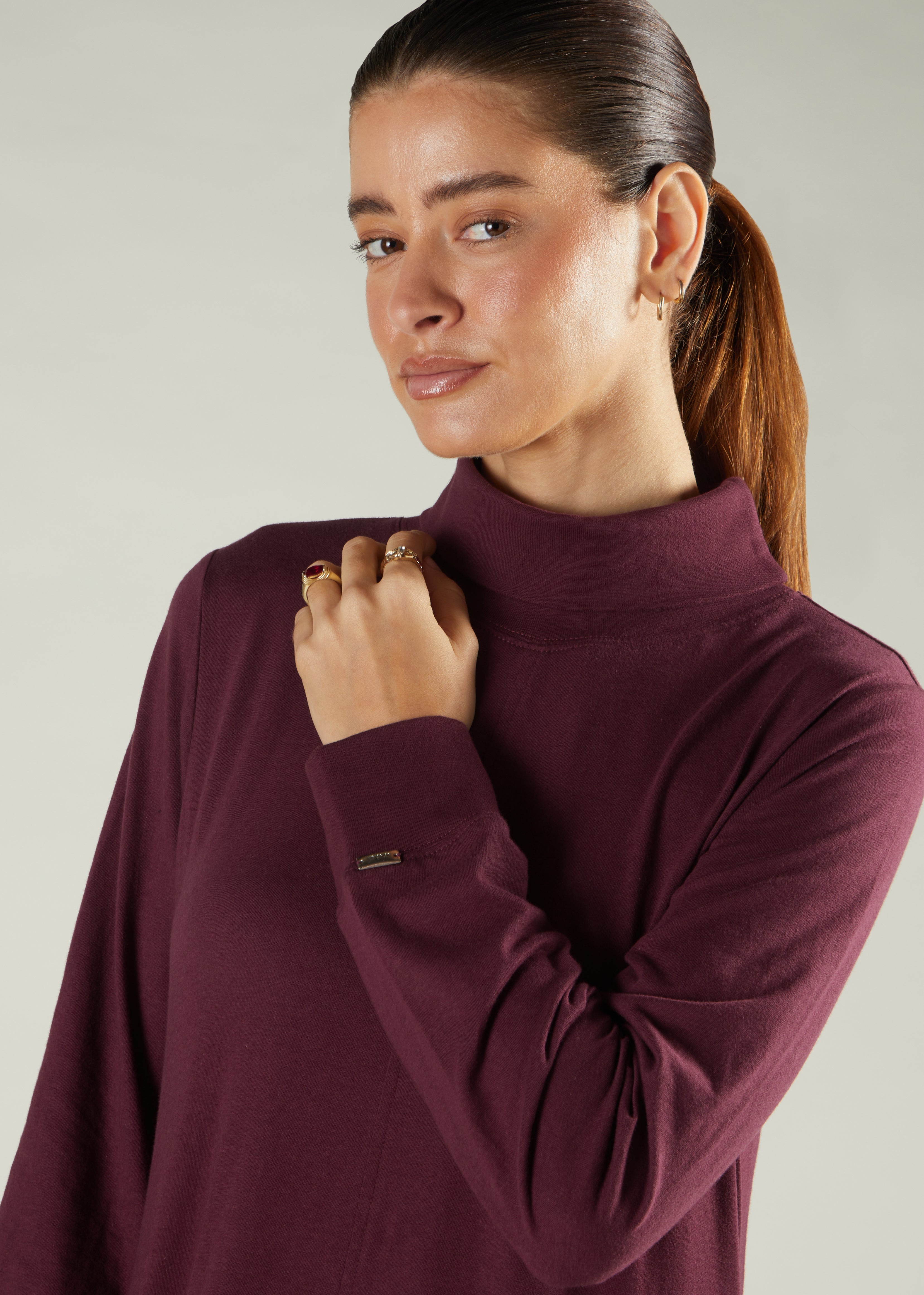 This abaya combines comfort with style, featuring a high neckline and a flowing skirt that flatters your silhouette. Made from soft 100% cotton jersey, it's easy to wear over other pieces when you need extra warmth. Perfect for creating layered looks throughout the colder months.
