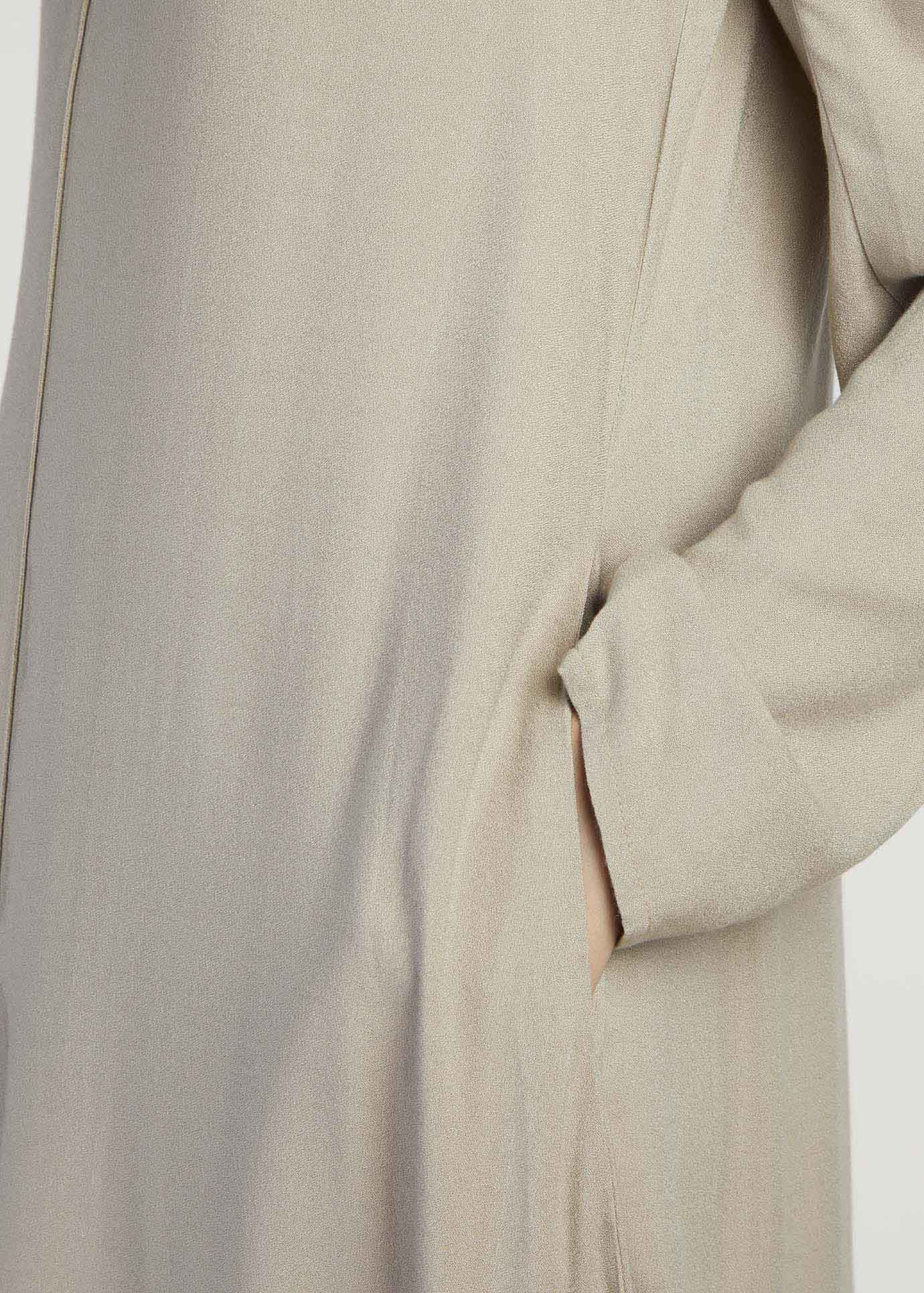 A simple easy to style and easy to wear Longline Abaya perfect for everyday wear. Featuring a single seam running along the middle of the Abaya & long semi fitted sleeves.