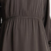 Indulge in the opulent dark grey hue of this Abaya, crafted from a luxurious, flowing fabric that gracefully drapes and compliments all body types. With a drawcord neckline and gathered pleats, this garment exudes a sense of refinement and style, while a pleated waist highlights its elegant pleats.
