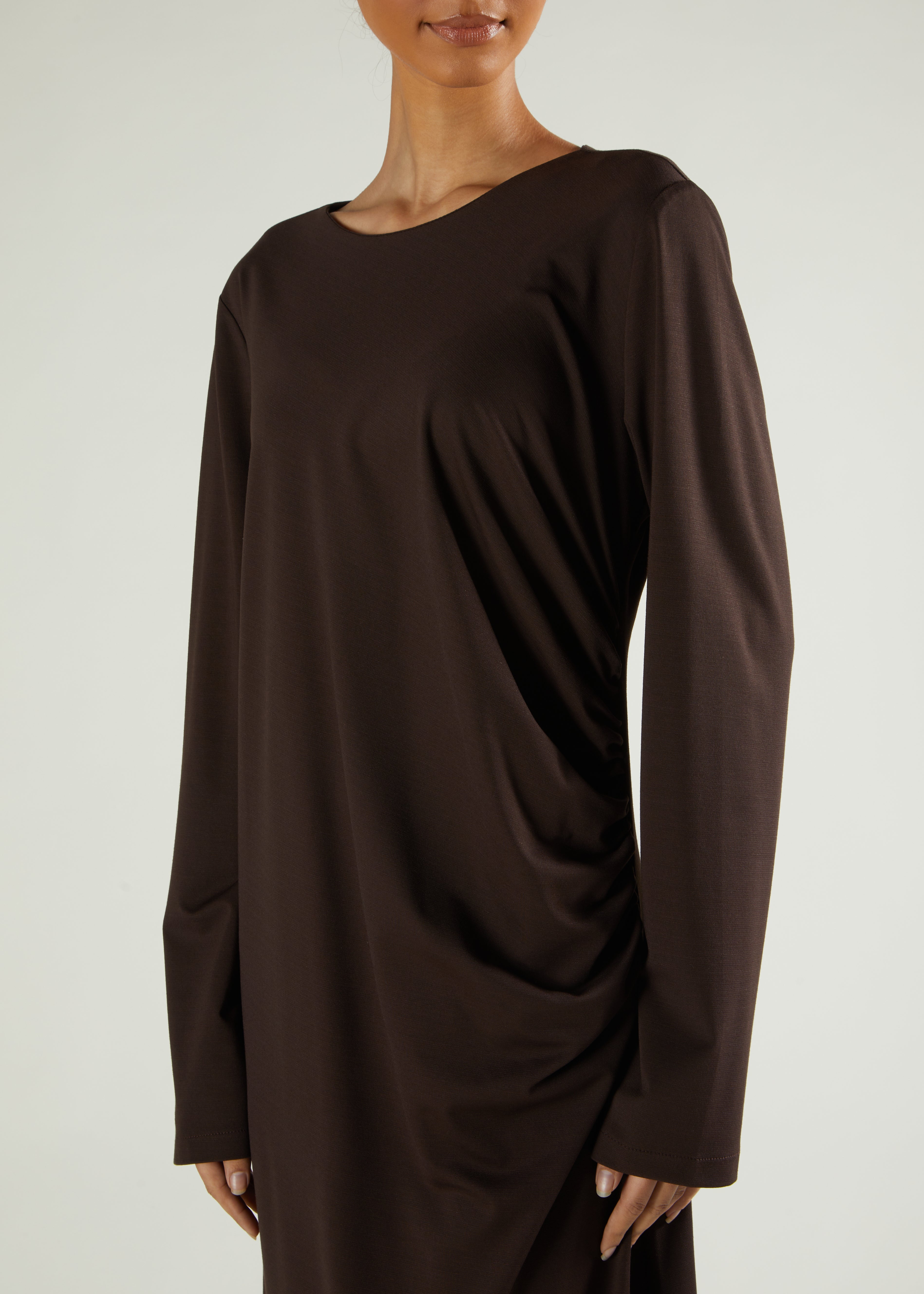 Side Pleat Abaya Dark Brown