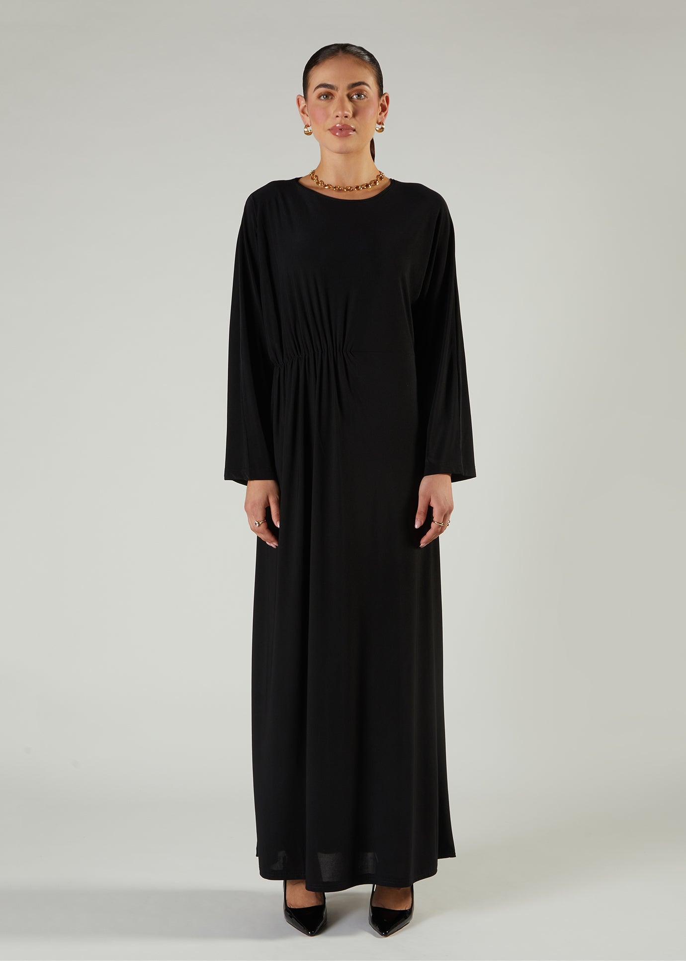 Side Pleat Abaya Ebony