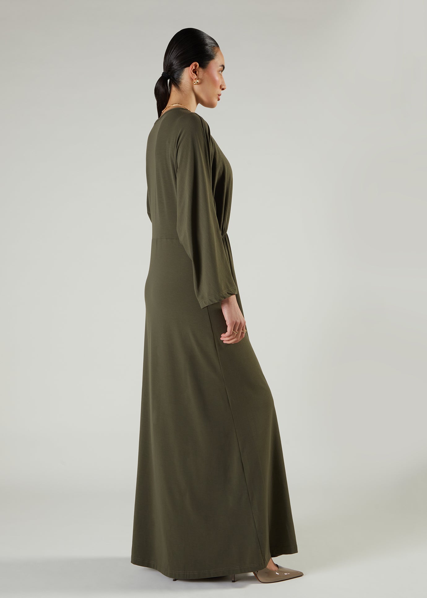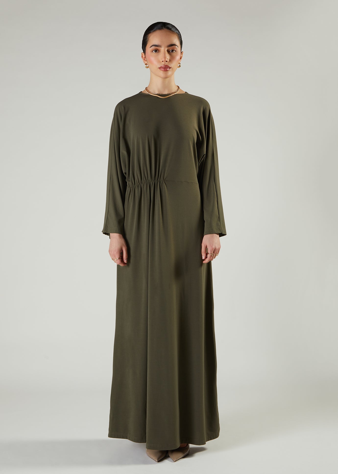 Side Pleat Abaya Olive