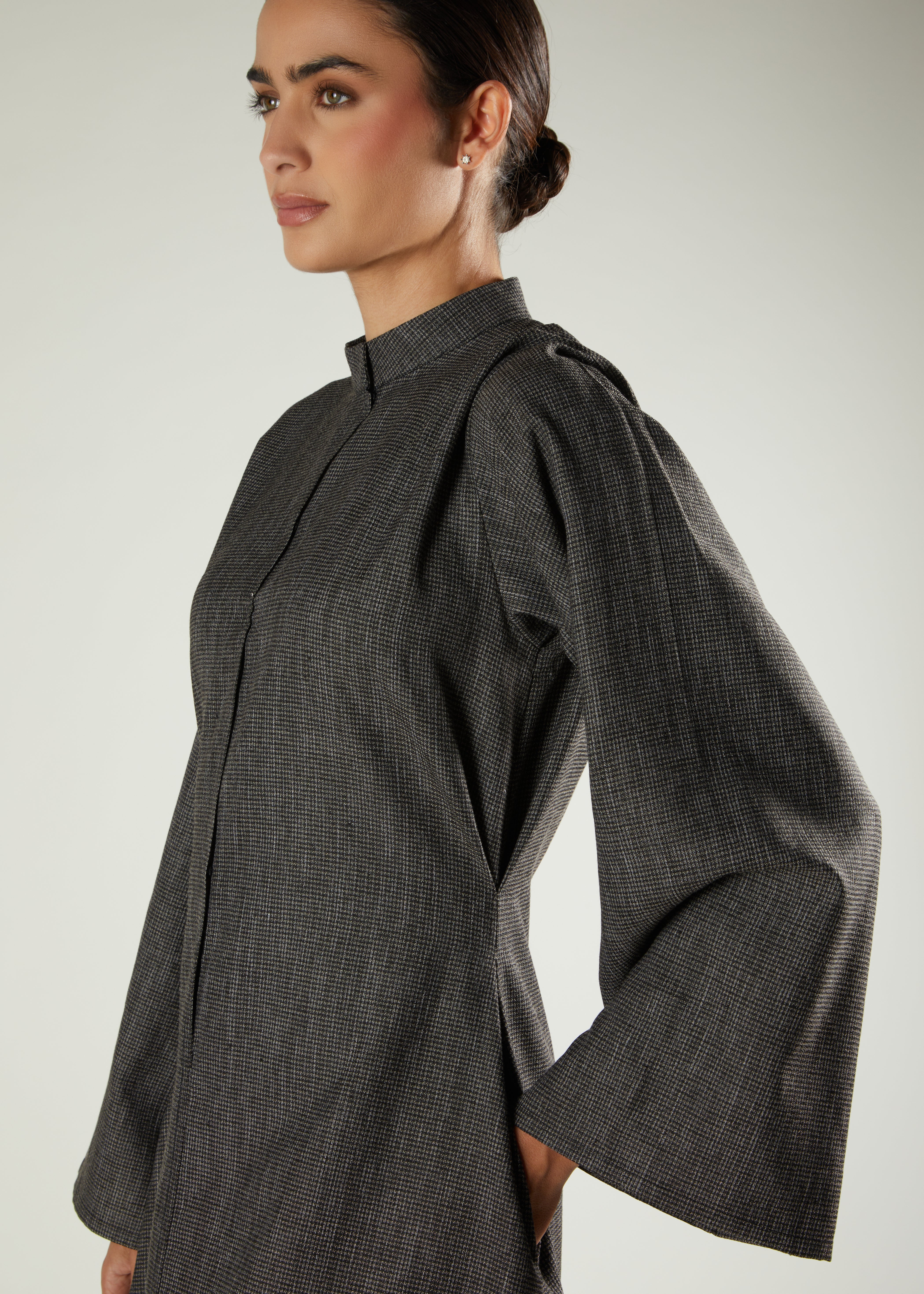 Timelessly tailored with a contemporary edge, this maxi is made from a softly structured woven fabric that drapes beautifully. The design features a clean high neckline and hidden popper fastening along the centre front for a streamlined finish. Side pockets bring a touch of practicality, while the full-length silhouette offers effortless modesty and movement. A versatile wardrobe essential that captures Aab’s commitment to refined simplicity and everyday elegance